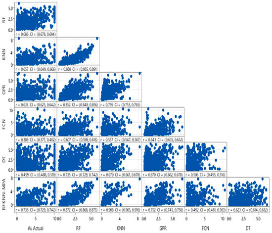 The RFKNN-MPA model performed best on the testing dataset for gold content prediction using the proposed technique. These results are encouraging and indicate that the model has excellent generalizability. However, it is required to perform further validation and testing on other datasets to conduct a comprehensive analysis of the model’s performance.