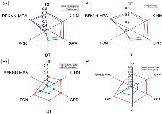The models explain testing dataset variance better than the training dataset because their R2 values are greater. Compared to the other models, the RFKNN-MPA model has the greatest R2 value of 0.597, which indicates that this model is superior in explaining the variation seen in the data.