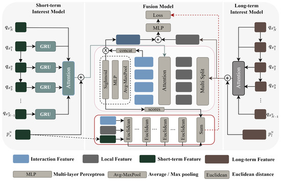 In recent years, deep learning technology has been widely used in various fields, such as anomaly detection [8,9], data enhancement [9,10,11], and so on. In the recommendation system field, based on the consideration of users’ long- and short-term interests [1,2,3,12,13,14] over time, the core principle is to model user interests based on the order of interacting items over a period of time. We can train long- and short-term interests separately based on the length of the sequence data and combine them to make recommendations that balance between personalization and diversity.