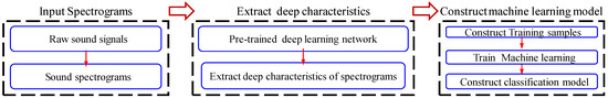 Basic idea of automatic recognition method-based spectrograms: input spectrograms, extract deep characteristics, and construct machine learning model.
