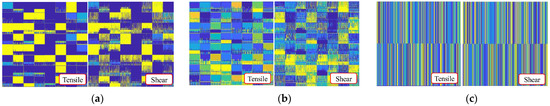 The visualization of the characteristics of the tensile and shear spectrograms extracted by the pool5 layer is presented in Figure 13c.