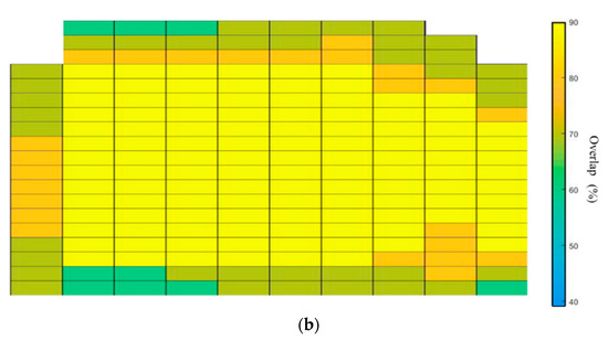 Results of contour route planning overlap rate. (a) Grid-type flying mission, (b) contour-type flying mission.