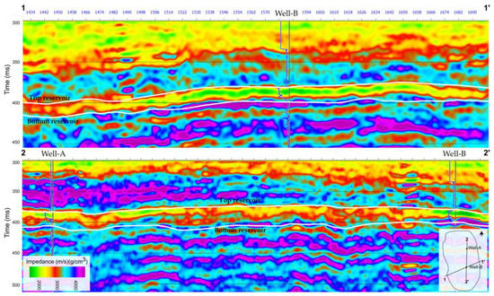 Acoustic impedance seismic profiles as a result of seismic inversion on actual seismic data.