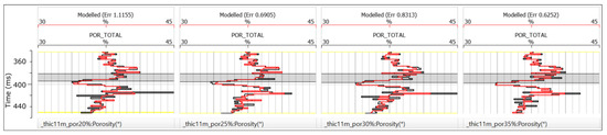 Synthetic well profiles with modeled (red) and input (black) total porosity.