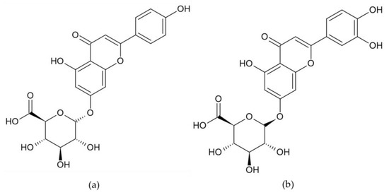 Structure of (a) apigenin-7-O-glucuronide and (b) luteolin-7-O-glucuronide.