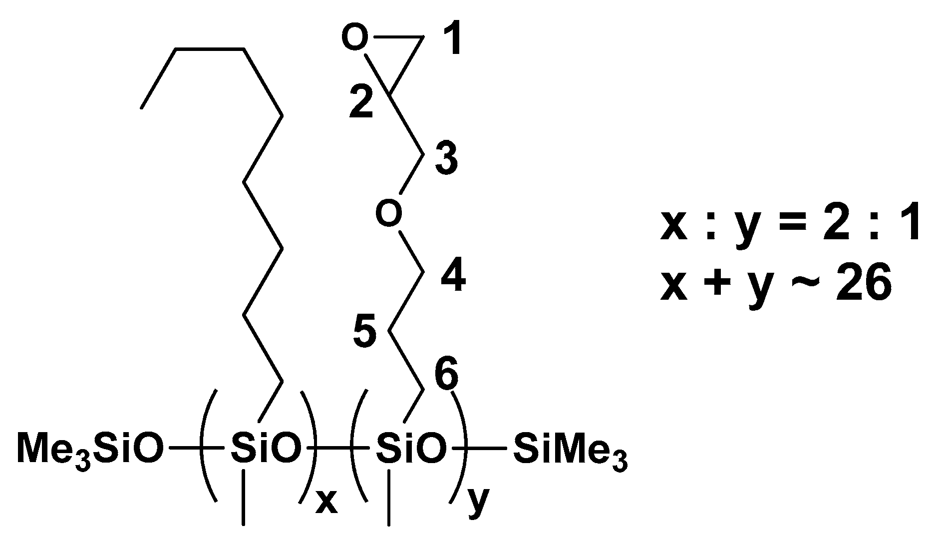 - Double-functionalized polysiloxanes in the epoxy–silicone matrix led to a significant improvement in the anti-icing properties, a reduction in ice adhesion, and an increased freezing delay time of water droplets in comparison to the unmodified silicone–epoxy resin.