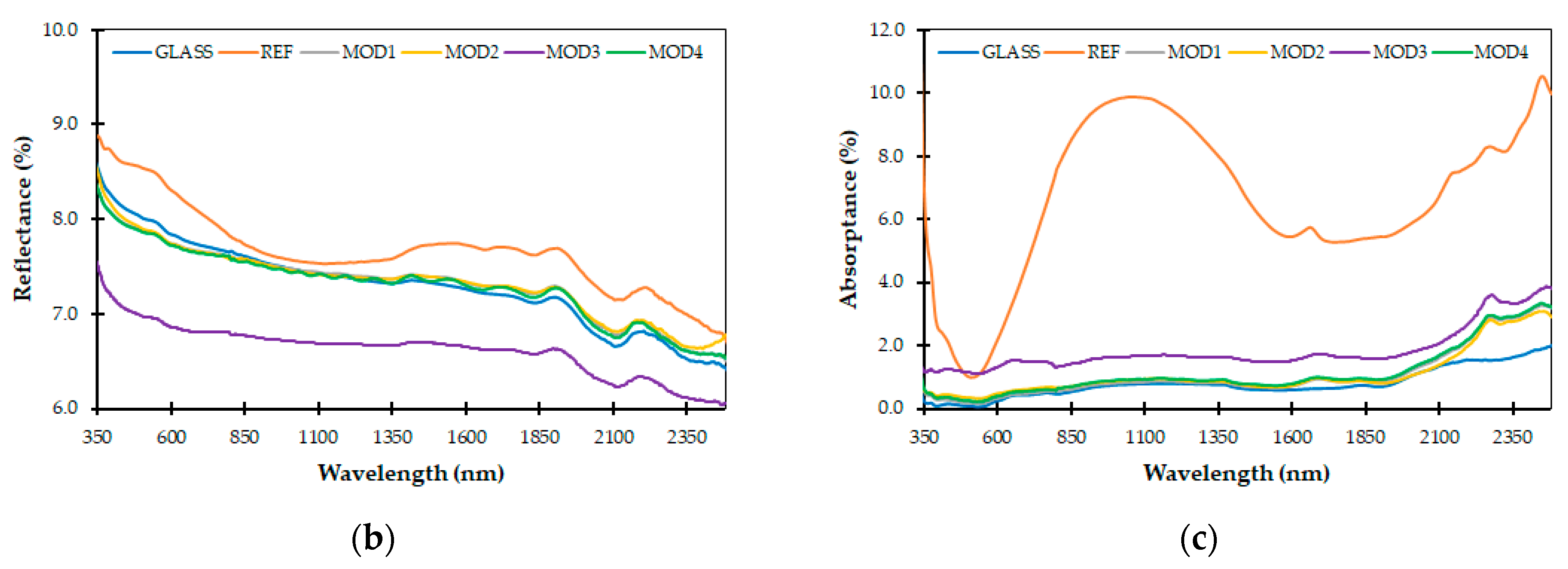 - The silicone–epoxy coatings produced in the entire tested spectral range showed similar optical properties (T, R, A) to those of glass. They can be potentially used in photovoltaic panels.