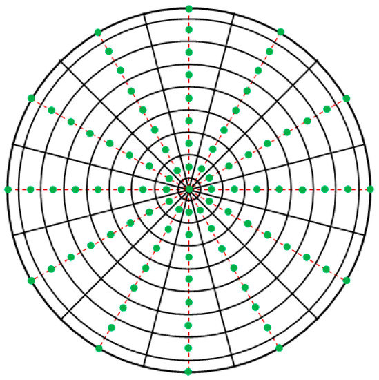 An alternative strategy for estimating coordinates may regard points close to the pole of the inflated membrane: the distance Δξi = (ξi − ξo) between a generic point Pi of the currently selected diameter and the membrane pole Po (i.e., the center point of inflated membrane, which should displace only in thez-direction but not in the x/ydirections) is multiplied by the nominal strain εp generated by the applied pressure. Nominal strain may even be corrected to εpcorr to account for the local variations of membrane thickness, for example, by using in first approximation the εpcorr/εp = to/tloc relationship taken from linear elasticity where tloc and to, respectively, are the local and nominal thickness values. The displaced position ξi′ of point Pi′ is determined from the Δξi′ = (1 + εp)ξi equation, where the distance Δξi′ = (ξi′ − ξo) is referred to the deformed configuration. The local ξ′-coordinates are finally transformed into x′- and y′-coordinates of deformed points based on the orientation of the selected diameter, and the corresponding in-plane displacements are determined from Equation (6). Interestingly, [49] analyzed the strain distributions in the radial (longitude) and circumferential (latitude) directions that develop in an inflated natural rubber membrane of diameter 120 mm and thickness 0.9 mm, very similar to the test case documented in the present article. Surface elements located within a circular area with a radius up to 20% of the membrane’s radius can be considered in an equi-biaxial state. Furthermore, radial strain remains nearly constant over the whole membrane. This information may bevery useful in the above-mentioned alternative strategy for determining the x1′, y1′, x2′, y2′, x3′, y3′, x4′, y4′ coordinates of the displaced points.