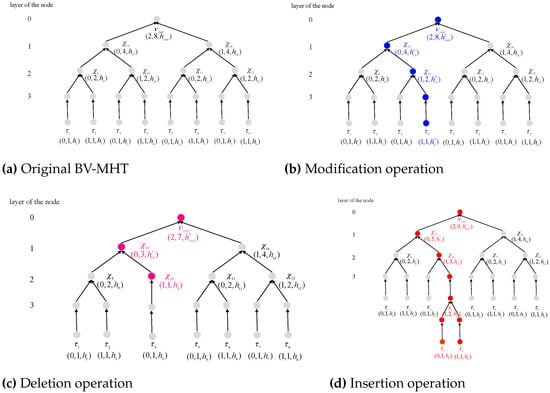 - modifies the original node into and updates the BV-MHT by recalculating all the nodes on the path from the node to the root, generating a new hash root .