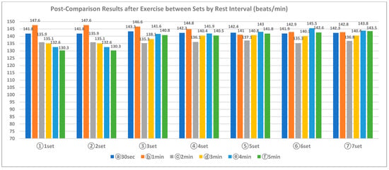 Post-comparison results after exercise between sets, shown in beats/min.