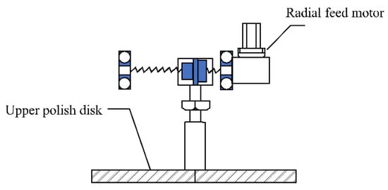 The radial-feed motion of the element fixation disk is less susceptible to uncertain disturbances compared to that of the upper-polishing disk. We establish a model for the radial-feed system of the latter. The upper-polishing disk radial-feed system of the RDP’s structure is demonstrated in Figure 2. The radial-feed system is composed of a radial-feed permanent-magnet synchronous motor, a spherical screw drive, and an upper-polishing disk. The screw is driven by the motor to realize the radial-feed motion.