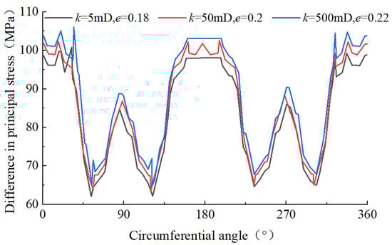 Variation of the maximum and minimum principal stress difference with the well circumference angle.
