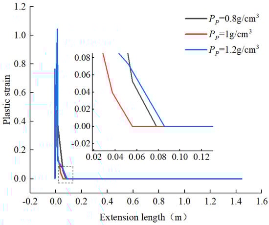 Variation of plastic strain with extension length under different permeability of the weak interlayer.