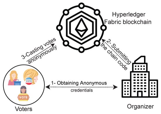 As explained earlier, the voter needs to obtain anonymous tokens from the organizer using blind signatures, then the voters can cast anonymous and encrypted votes to the smart contract. Finally, blockchain nodes aggregate all the votes that have been cast to obtain the result of the election in a privacy-preserving manner.
