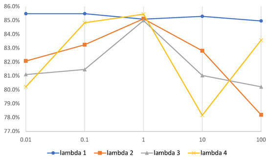 The sensitivity analysis was performed on the HAR dataset to study the influence of parameters , , , and on the contrasting learning process. Figure 5 shows the evaluation results. When evaluating , the others are fixed to 1. It is observed that the model is not sensitive to , and it is easier for , , and to influence the representation. Commonly, the model achieves the best performance when s .