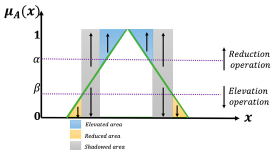 Equation (6) illustrates the mathematical manifestation of shadowed sets. This formula is constructed from two α-cuts on a T1-FS, incorporating α and β values, thereby defining three intervals.