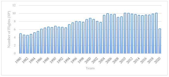 The US flight cycles (1980–2020) [29] are shown in Figure 17.