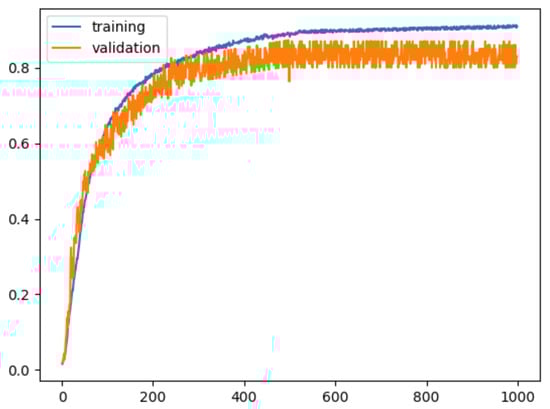 The training method for both streams may be regarded as a modification of the method in reference [32]. The mini-batch stochastic gradient descent with momentum, set to 0.9, is used to learn the network weights. For the temporal stream, we calculate an optical flow volume I for the chosen training frame. A fixed size 224 × 224 × 2L input is randomly chopped from corners and flipped from that volume, as discussed earlier. In the spatial stream, each batch generates 128 frames cropped down to 224 × 224 by sampling 128 videos (uniformly across all activities). The learning rate is first set to 10−2 for both streams and then gradually reduced according to a predetermined schedule that is maintained throughout all training sets. When training both streams from scratch, models are run for 50,000 iterations, whereas the enhanced spatial stream is trained for just 2000 iterations (classification layer training + fine-tuning). In the end, softmax scores from both models are fused by averaging the softmax scores.