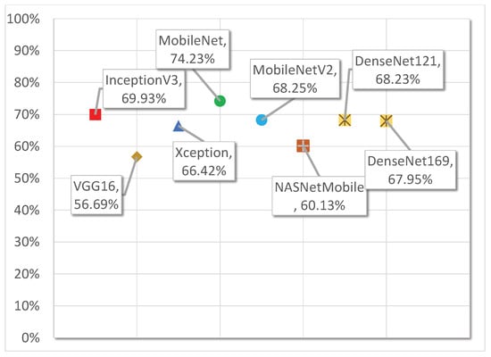 Based on the data given in Figure 7, we picked the MobileNet model since it has the best performance. After that, we trained classification layers and fine-tuned the entire model with the augmented dataset this time. It can be seen in Table 5 that it outperformed the standard MobileNet model, with a 1.53% increase in accuracy.