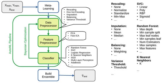 - Feurer, M.; Klein, A.; Eggensperger, K.; Springenberg, J.; Blum, M.; Hutter, F. Efficient and Robust Automated Machine Learning. In Proceedings of the Advances in Neural Information Processing Systems 28 (2015), Montreal, Canada, 7–12 December 2015; pp. 2962–2970. [Google Scholar]