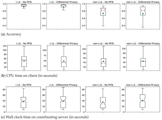 Although it is also possible to configure the application of privacy-enhancing techniques through hyperparameters, it is rather straightforward that excluding these techniques will lead to models that are more accurate (e.g., no additional noise) and/or computationally less expensive to compute (e.g., no cryptographic or secure computation techniques) at the expense of possibly leaking sensitive information. However, the loss of privacy or confidentiality is hard to quantify and systematically compare across different privacy-enhancing techniques. That is why the application of these techniques is decided upon up front and not as a trade-off in the Bayesian optimization process.