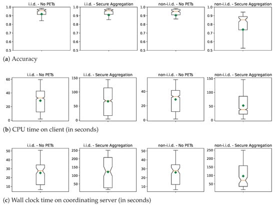 - Li, K.H.; de Gusmão, P.P.B.; Beutel, D.J.; Lane, N.D. Secure Aggregation for Federated Learning in Flower. In Proceedings of the DistributedML ’21: 2nd ACM International Workshop on Distributed Machine Learning, New York, NY, USA, 7 December 2021; pp. 8–14. [Google Scholar] [CrossRef]