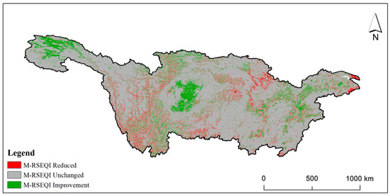 Change map of M-RSEQI in the Yellow River Basin from 2000 to 2017.