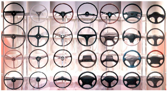 - Wikimedia. Available online: https://upload.wikimedia.org/wikipedia/commons/1/11/Steering_wheels_from_different_periods.jpg (accessed on 12 April 2023).
