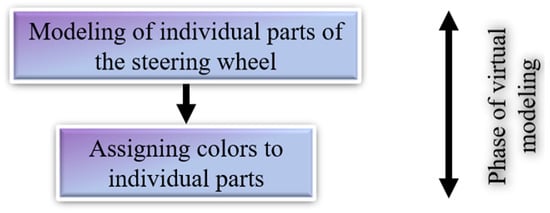 The methodology is divided into two phases: the preparatory phase of the design of the steering wheel of a vehicle and the virtual modeling phase. The preparatory phase included a number of sub-goals and was demanding in terms of theoretical knowledge and also required the designers’ imagination as the design of the steering wheel is largely individual. Within this phase, the dimensional characteristics, the number of assembly members and the software application in which the model was later modelled were defined. The virtual modeling phase included modeling individual parts of the steering wheel, creating an assembly and assigning colors. As part of deciding on the number of parts, a variant with seven parts was chosen.