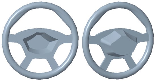 - Sismisova, D.; Mikulas, E.; Zeman, S.; Kucera, L. Design and Manufacturing of Multipurpose Steering Wheel. In Proceedings of the 59th International Conference of Machine Design Departments (ICMD), Lecture Notes in Mechanical Engineering, Demanovska Dolina, Slovakia, 11–14 September 2018; pp. 175–183. Available online: https://www.webofscience.com/wos/woscc/full-record/WOS:000613081400021 (accessed on 12 April 2023).