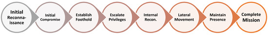 “Advanced” means the attacks are planned by a team of individuals with many resources, expertise, and funding. The assaults must be simple to be successful. It is common for an attacker to utilize phishing and readily available malware development tools [40,41]. Nevertheless, when necessary, they utilize software, such as zero-day exploits, to target particular vulnerabilities and launch several attacks to gain access. “Persistent” attackers are desperate to access the victim’s systems, applications, and resources. Resultantly, the intruder has full access to the system, including backdoors. If one connection is compromised, others may be opened and used to continue collecting sensitive information. Distinguishing between a threat and an opportunity is also important. Since they are more than software that runs independently, APTs pose a problem [12,42,43].