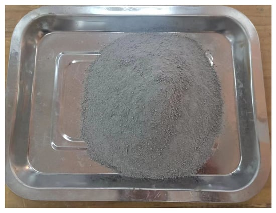 Phosphogypsum was taken from the Wengfu Phosphate Mine Storage Yard in Fuquan City, China. It was off-white and mostly in powder form, as shown in Figure 2. The basic physical indicators are shown in Table 3, and the chemical composition is shown in Table 4.