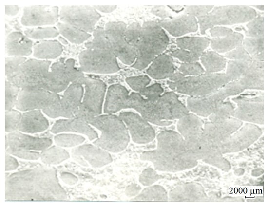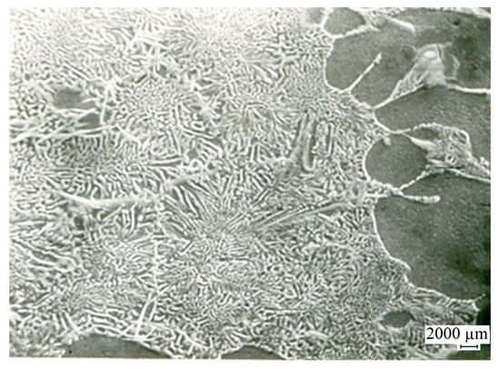 The α-phase in Al-Si alloys indeed refers to the solid solution of silicon in aluminum. Its maximum solubility of silicon occurs at the eutectic temperature, which is the temperature at which the alloy composition has the lowest melting point. At the eutectic composition (approximately 11.3% silicon) and temperature (around 577 °C), the α-phase can have a maximum solubility of about 1.65% silicon. However, at lower temperatures, such as around 200 °C, the solubility of silicon in aluminum decreases significantly to about 0.05–0.1%. In binary Al-Si systems, the eutectic is a mixture of the α-phase (aluminum-rich solid solution) and almost pure silicon. The eutectic structure consists of dark grey silicon particles distributed within a light matrix of the α-phase. The amount, shape, size, and distribution of these free silicon particles in the eutectic microstructure can significantly impact the mechanical properties of the Al-Si alloy. For example, the presence of more free silicon can improve the alloy’s wear resistance but may reduce its ductility. The distribution of silicon particles also affects the alloy’s overall strength and toughness [28,29].