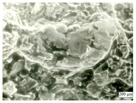 Based on a macroscopic point of view, the fracture of super eutectic silumin is brittle and planar, and it is arranged perpendicular to the tensile force. This type of fracture occurs when the alloy contains many fine particles that do not allow for internal plastic deformation of small volumes of metal between the particles with a small proportion of macroscopic deformation. The brittle phase in super eutectic silumin is the eutectic silicon. During loading, brittle failure occurs due to the splitting of unmodified silicon. This can be attributed to the fact that the eutectic silicon in the alloy is not modified with surface-active elements, which would allow for its branching and improve the dimensional parameters. As a result, the unmodified eutectic silicon acts as a stress concentrator, leading to the brittle fracture of the material.