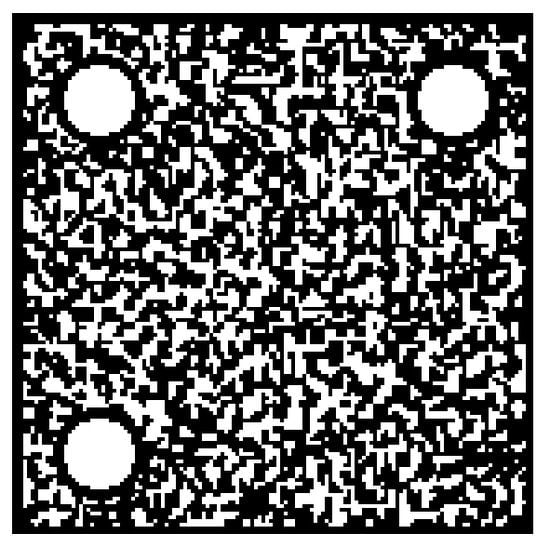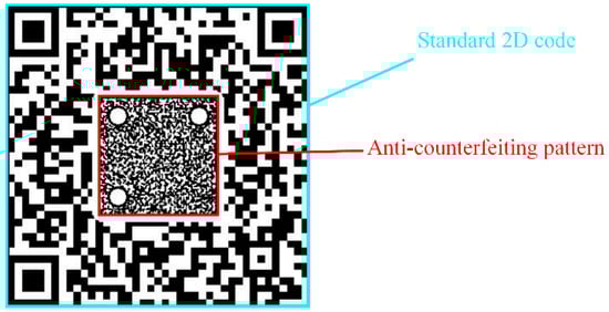 An anti-counterfeiting two-dimensional code [35] is mainly composed of a standard 2D barcode and anti-counterfeiting pattern, as shown in Figure 1. The anti-counterfeiting pattern is a pattern with fine texture, and its digital image is only composed of black and white binary pixels. Illegal copying will further magnify the ink diffusion or ink powder adsorption of fine texture in the printed anti-counterfeiting pattern so as to better expose the forgery trace, thus effectively improving the anti-counterfeiting property of the two-dimensional code. Then, it is acquired by scanning or photographing equipment and matched with relevant authenticity identification algorithms to achieve the purpose of identifying authenticity.