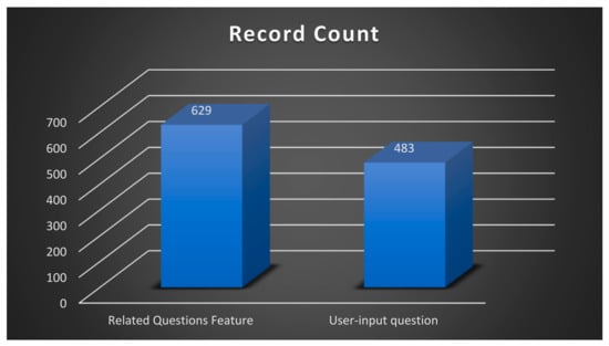 Figure 6 indicates that the Related Questions feature was the predominant source, accounting for 55.6% of the records, compared with user-input questions, which accounted for 44.4% of the records. This implies that a substantial proportion of the questions asked were generated through the Related Questions feature, indicating its ability to capture users’ attention and stimulate their interest in seeking further knowledge about the original query.