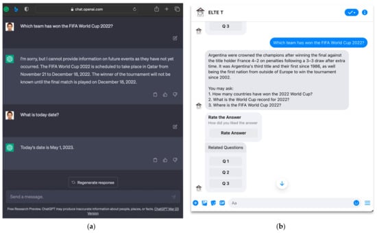 Figure 9a demonstrate that ChatGPT struggles to answer questions about events and products that occurred in 2022 and 2023. In contrast,