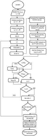 This paper recommends a two-phase method for data classification or regression problems. In the first phase, a global optimization method directs the production of artificial features from the existing ones with the help of grammatical evolution [70]. Grammatical evolution is a variation of genetic programming where the chromosomes are production rules of the target BNF grammar, and it has been used successfully in a variety of applications, such as music composition [71], economics [72], symbolic regression [73], robotics [74], and caching algorithms [75]. The global optimization method used in this work is the particle swarm optimization (PSO) method [76,77,78]. The PSO method was selected as the optimization method due to its simplicity and the small number of parameters that should be set. Also, the PSO method has been used in many difficult problems in all areas of the sciences, such as problems that arise in physics [79,80], chemistry [81,82], medicine [83,84], and economics [85]. Furthermore, the PSO method was successfully applied recently in many practical problems such as flow shop scheduling [86], the successful development of electric vehicle charging strategies [87], emotion recognition [88], robotics [89], the optimal design of a brace-viscous damper and pendulum tuned mass damper [90], application to high-dimensional expensive industrial problems [91], and RFID readers [92]. The generated artificial features are nonlinear combinations of the original ones, and any machine learning model can be used to effectively estimate their dynamics. In the present implementation, the RBF network was used since it is a widely tested machine learning model, but also because its training is much faster compared with other models. In the second phase, the best features obtained from the first phase are also used to modify the test set of the objective problem, and a machine learning method can be used to estimate the error in the control set.