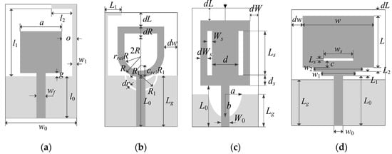 - Haq, M.A.; Koziel, S. On topology modifications for wideband antenna miniaturization. AEU Int. J. Electron. Commun. 2018, 94, 215–220. [Google Scholar]