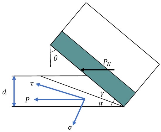 For the sake of calculation convenience, the fracture surface of the rock is simplified as a plane. It can be deduced from force analysis that the stress distribution on this fracture is maximum at the bottom edge and zero at the free surface. Based on this boundary condition, let us assume that the stress distribution on the fracture follows Equation (1) [25].