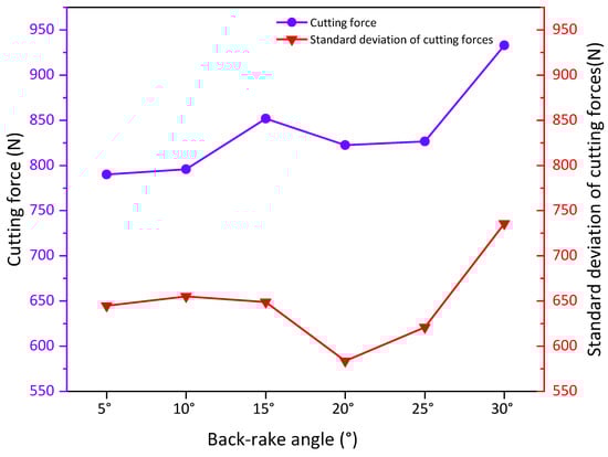 The standard deviation of mean cutting forces and mean cutting forces at the back-rake.
