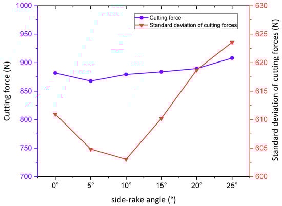 The standard deviation of mean cutting and cutting forces at the side-rake angle.