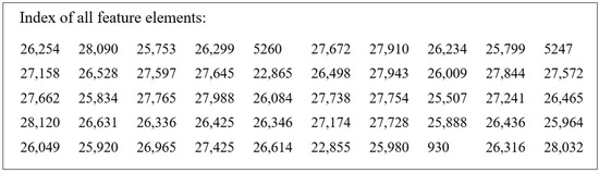 A total of 50 feature elements have been identified among the 30,858 finite elements. Figure 7 showcases the indexes assigned to these 50 feature elements in the finite element model, with a noteworthy concentration of indices falling within the range of 26,000 to 28,000. This specific region, situated near the contact surface with the pin, corresponds to areas characterized by higher stress gradients. Consequently, this observation provides logical support for the selection of feature elements based on the Pearson correlation coefficient, affirming their alignment with the intricate three-dimensional stress distribution characteristics of the structure.