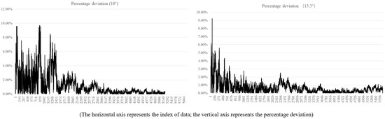 Figure 17. The percentage deviation with the angles of 10 and 13.3.