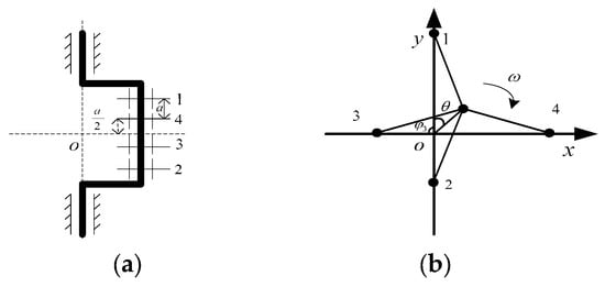 The rectangular coordinate schematic diagram of the crank-linkage mechanism is shown in Figure 2. In the diagram, indicates the angle between the center line of any column of the cylinder and the y-axis. The right side of the y-axis is specified as positive, and the left side of the y-axis is negative. indicates the angle of crank relative to the y-axis, indicates the angular speed of crank rotation, and a indicates the axial distance between the barycenter of two adjacent rows of linkage.