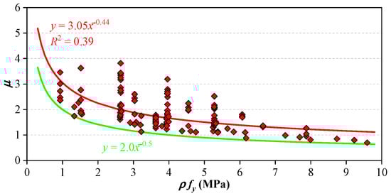 where vu is the ultimate interface shear resistance, c is the cohesion, ρfy is the clamping stress, and µ is the friction factor. To propose the equation, cohesion c and friction factor µ should be determined based on push-off test results collected from the literature.