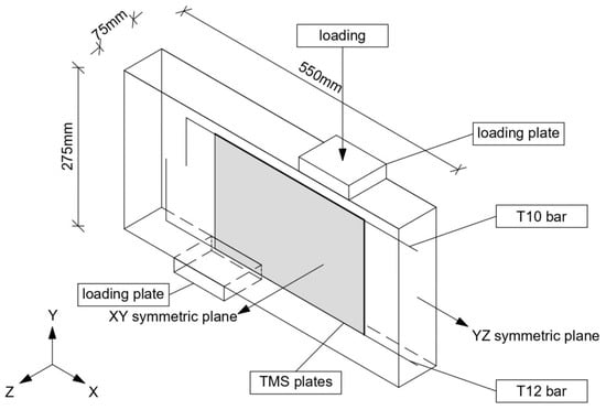 All the specimens were cast with Grade 20 cube strength premixed concrete. The concrete cubes and cylinders were cast and tested in accordance with BS EN 12390-3 [14] and BS EN 12390-6 [15], respectively. Based on the average value of the three specimens, the 28-day concrete compressive strength and splitting tensile strength were 21.56 MPa and 2.04 MPa, respectively. Tensile testing in accordance with ISO-6892-1 [16] was performed on all the steel bars and TMS plates. Table 2 and Table 3 summarize the mechanical properties of the high tensile steel bars and TMS plates, respectively.