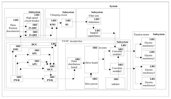 The traction system is the core component of urban rail transit vehicles. It provides traction and braking force for the train according to traction and braking needs. It converts the electric energy provided by the power grid into three-phase AC energy for the motor, and then the traction motor converts the electric energy into mechanical energy to drive the train. According to the system maintenance manual and related materials, the main components included in the system are high-voltage electrical box HV011/HV02, reactor box L, Variable-Voltage–Variable-Frequency (VVVF) inverter box, etc. Via the analysis of the traction system, it can be seen that the electrical relationship of the traction system is very complex, and there are inevitably some uncertain factors in the test process.