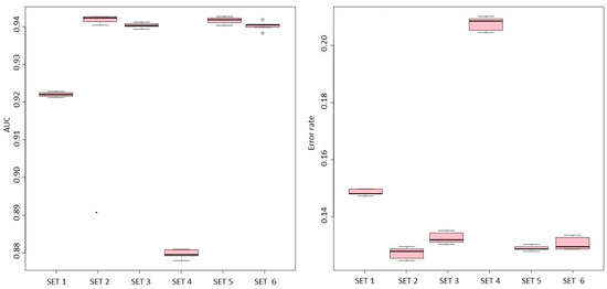 In the case of the ANN models, a network architecture was implemented using the average of the created models (avNNet) with a maximum number of 145 iterations. This architecture is not a specific or optimal architecture for the case study, but its success primarily depends on the number of analyzed parameters [67]. In each of the ANN, a different hyperparameter grid was implemented, as well as repeated cross-validation. The adjusted hyperparameters corresponded to the ‘size’ parameter or neurons in the hidden layer of the network. The maximum value set in each model for this parameter corresponded to the maximum number of variables in each of the sets. The minimum value was taken as 1. The rate of variation between the maximum and minimum used was also 1. In addition, the hyperparameter ‘decay’ or L2 penalty rate was also applied to the weights of the network. The explored penalty values were 0.1, 0.01, and 0.001. To avoid increasing the model’s bias, the use of replacement sampling was disabled in each model.