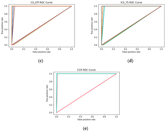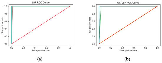 ROC curves for the NN with the following texture descriptors: (a) LBP, (b) OC_LBP, (c) CS_LTP, (d) ICS_TS, and (e) CCR.